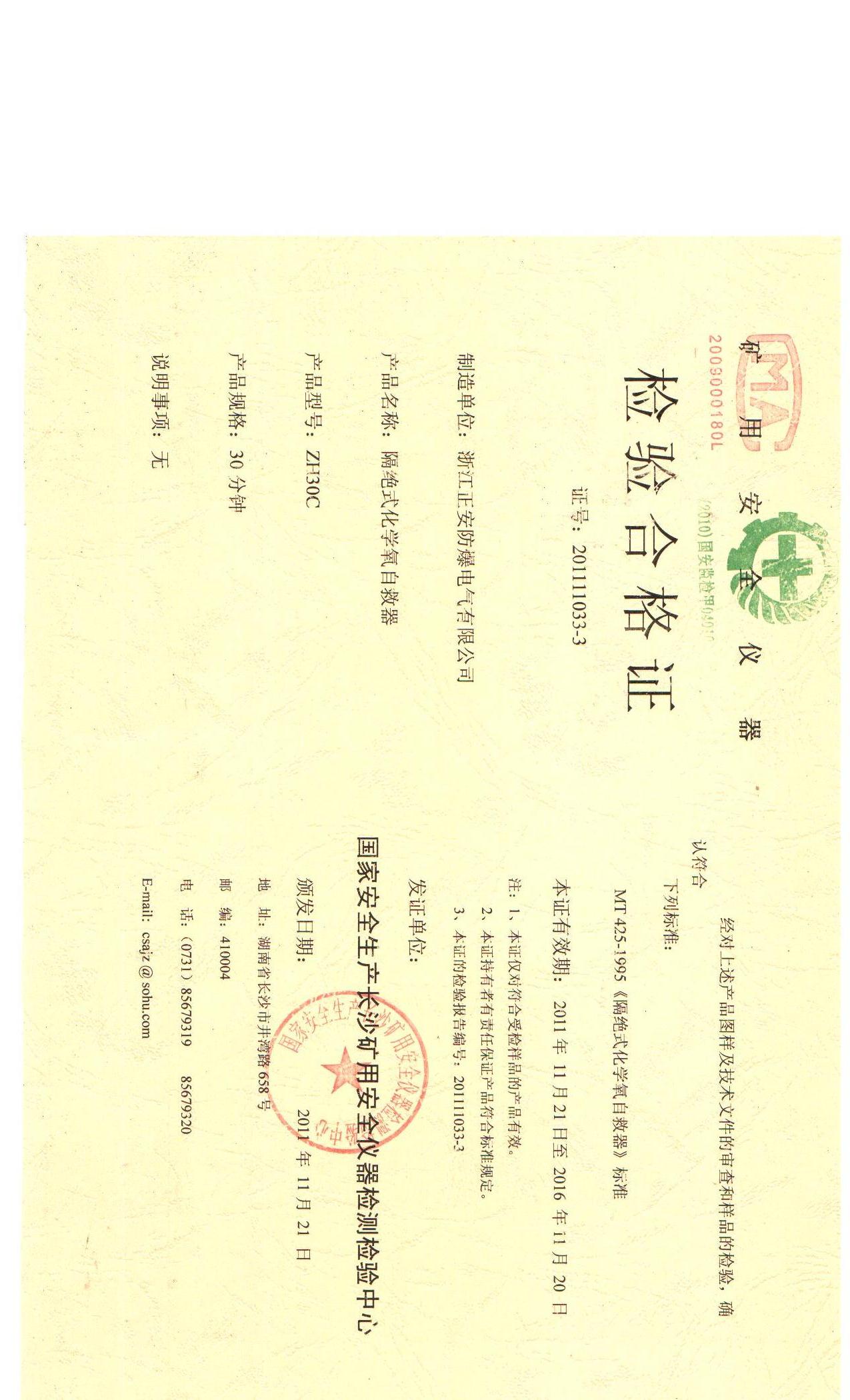 ZYJ(B)壓風(fēng)安標(biāo)證