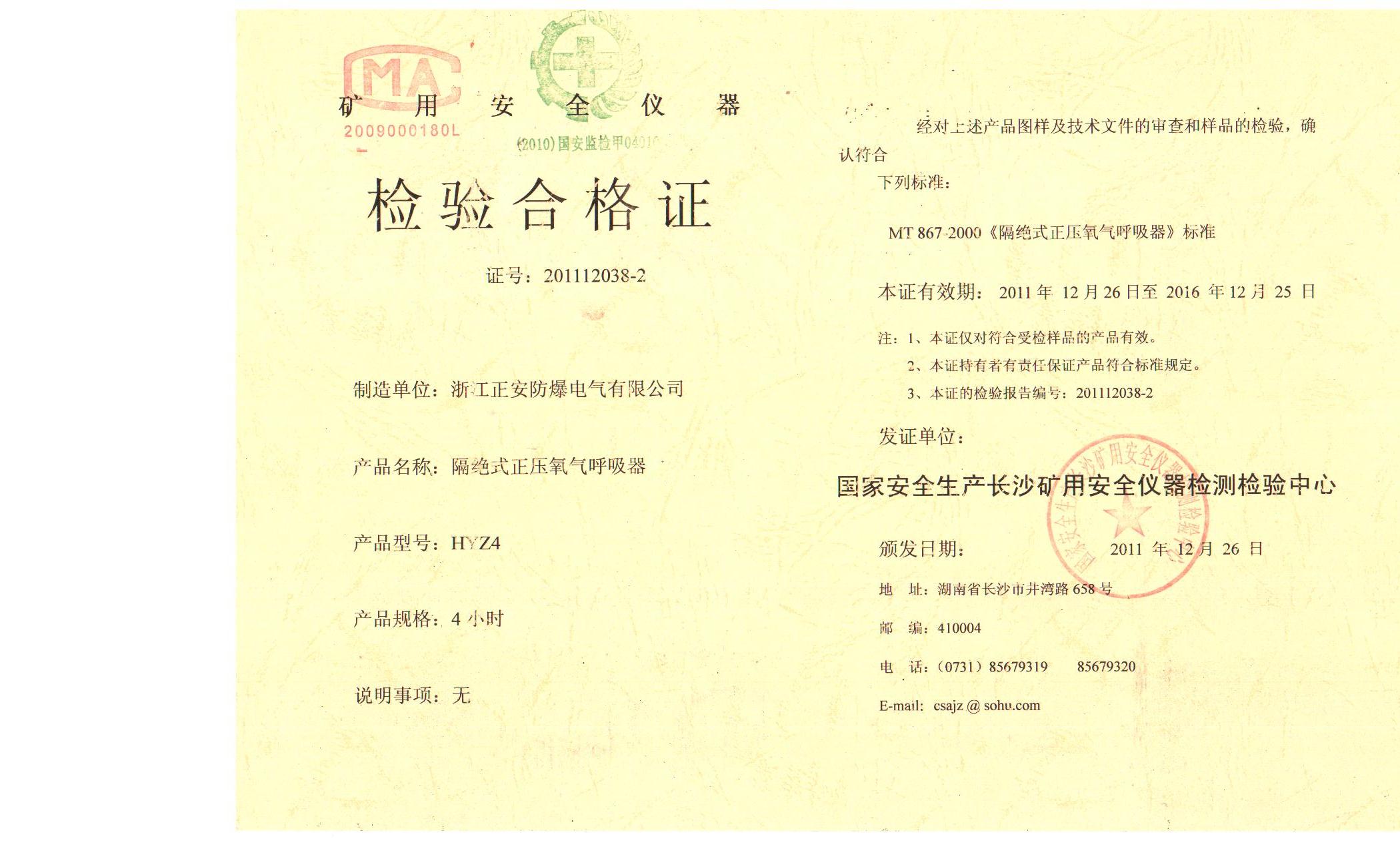 HYZ4安標(biāo)證